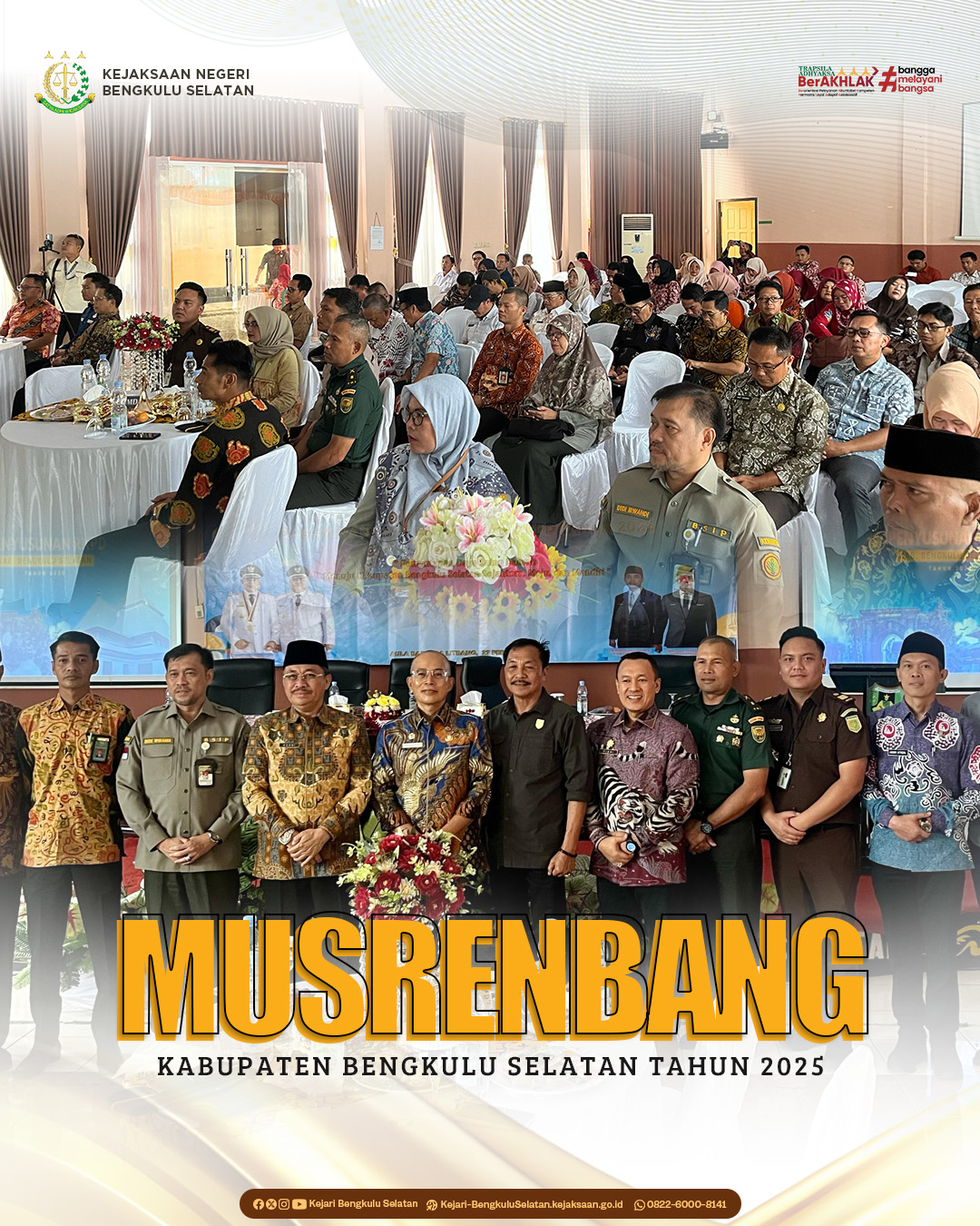 Home BERITA Musrenbang Kabupaten Bengkulu Selatan Tahun 2025 BERITA Musrenbang Kabupaten Bengkulu Selatan Tahun 2025 By admin - March 10, 2025 FacebookTwitterWhatsAppPrint Kasi Datun Kejari Bengkulu Selatan, Ichxan Elxhandi,S.H. menghadiri Musrenbang kabupaten Bengkulu Selatan Tahun 2025 yang dilaksanakan di Aula Bappeda kabupaten Bengkulu Selatan.