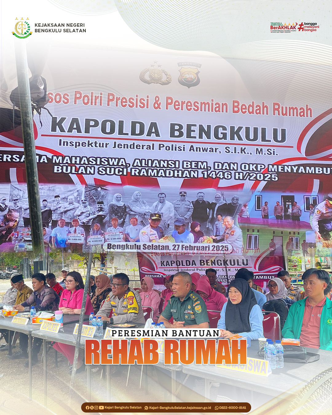 Home BERITA Peresmian Bantuan Rumah Kapolda Bengkulu BERITA Peresmian Bantuan Rumah Kapolda Bengkulu By admin - March 10, 2025 FacebookTwitterWhatsAppPrint aksa Fungsional Lutiarti, S.H. mewakili Kajari mengikuti Video Conference yang dilaksanakan di Kapolres Bengkulu Selatan mengenai Peresmian Bantuan Rehab Rumah.