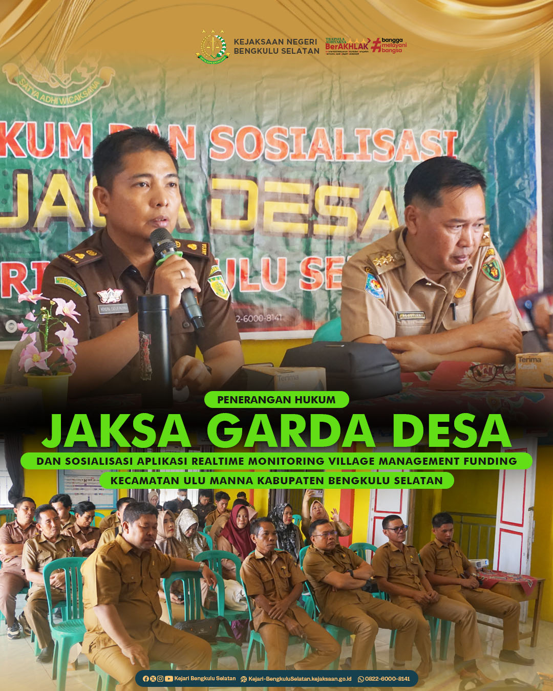 Kepala Seksi Intelijen Bpk. Hendra Catur Putra, S.H.,M.H. beserta staf Intelijen melaksanakan kegiata Penerangan Hukum JAGA DESA (Jaksa Garda Desa) serta sosialisasi aplikasi Kejaksaan Realtime Monitoring Village Management Funding.